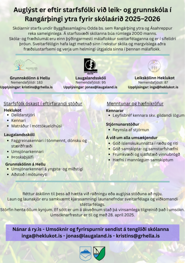 Félags- og skólaþjónusta Rangárvalla- og Vestur Skaftafellssýslu auglýsir eftir verktaka til að sinna hlutverki verkefnastjóra til að stýra innleiðingu á lögum um samþætta þjónustu í þágu farsældar barna nr. 86/2021. Um er að ræða fjölbreytt og krefjandi verkefni.