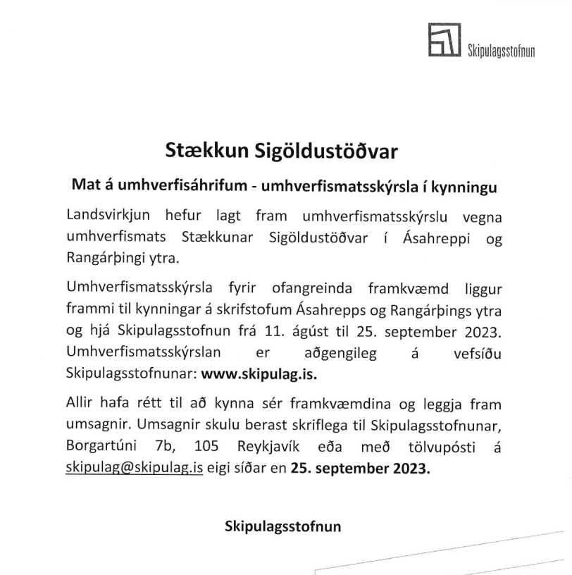 Stækkun Sigöldustöðvar - Umhverfismatsskýrsla í kynningu